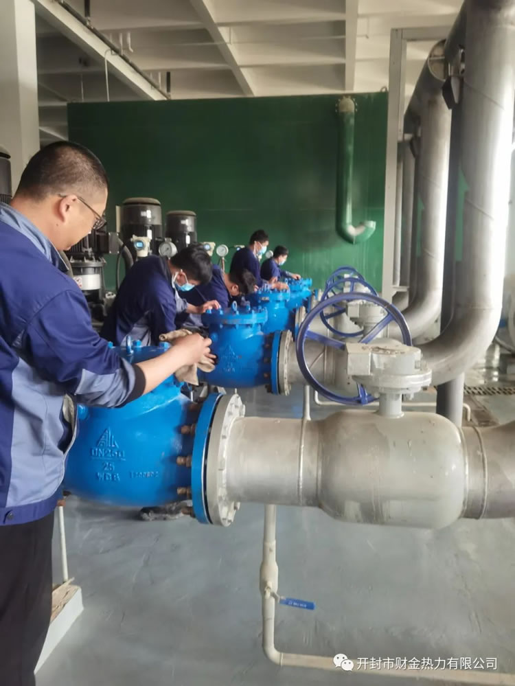 為提升供暖質(zhì)量,確保2022年—2023年供暖期供熱系統(tǒng)能夠安全穩(wěn)定、節(jié)能高效地運(yùn)行,隨著熱電聯(lián)產(chǎn)機(jī)組技術(shù)改造西區(qū)供暖項(xiàng)目第一次測試圓滿結(jié)束,財(cái)金熱力第一時間完成了2022年設(shè)備消缺保養(yǎng)計(jì)劃,啟動供暖系統(tǒng)各運(yùn)行設(shè)備的檢查、技改工作,力爭做到“早計(jì)劃、早啟動、早落實(shí)”。公司組織精干力量對供熱設(shè)備和管道展開全面消缺和保養(yǎng)。對隔壓換熱車間管道、設(shè)備等進(jìn)行地毯式排查,不放過任何隱患,堅(jiān)決做到不漏項(xiàng)。